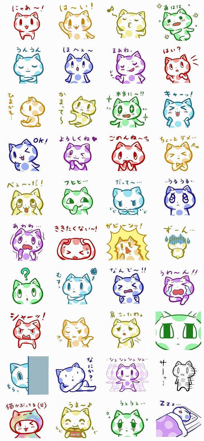 水玉模様がキュートな猫のみずタマちゃんのスタンプです。